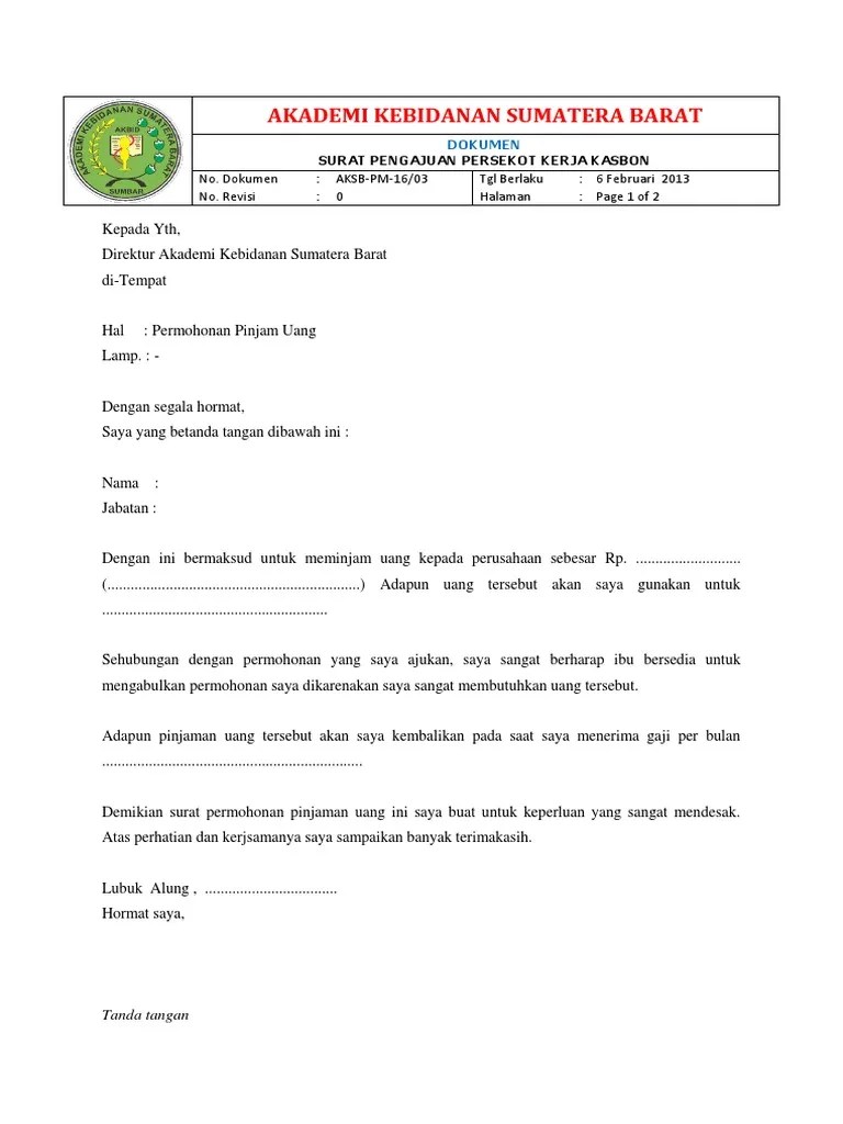 Contoh surat pengajuan pinjaman ke perusahaan. Contoh surat permohonan adalah contoh bagi anda yang sedang membutuhkan gambaran terhadapa apa yang anda lakukan ketika membutuhkan pengajuan . 3 contoh surat perintah kerja untuk perusahaan dan lainnya. Contoh bikin surat pengajuan kasbon ke perusahaan. Itulah contoh surat pengajuan kasbon ke perusahaan yang dapat admin kumpulkan. Admin blog contoh seputar surat 2019 juga . Surat permohonan berisi tentang sebuah permintaan tentang sesuatu . Itulah yang dapat kami bagikan terkait contoh bikin surat pengajuan kasbon ke perusahaan. Inilah contoh form pengajuan kasbon. Inilah yang anda cari tentang contoh bikin surat pengajuan kasbon ke perusahaan. Contoh surat permohonan pinjaman uang . Nah saat kamu akan magang ke suatu . Contoh surat permohonan pinjaman uang.